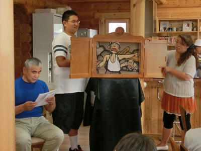 彼女が読みやすい民話を選び紙芝居にしてくれた。