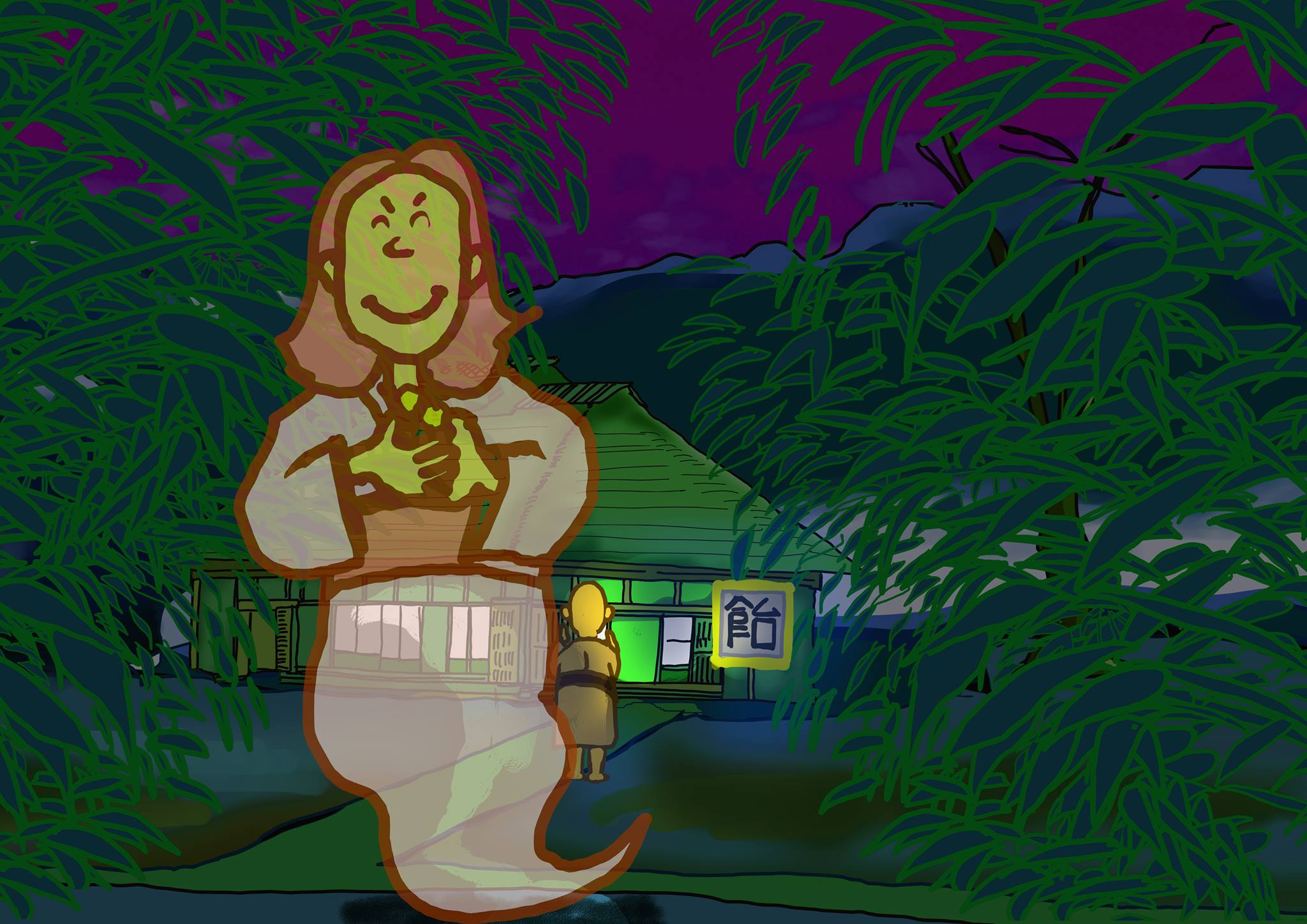絵は保原町の人が今回、上演を予定されている「飴買幽霊」の一場面です。